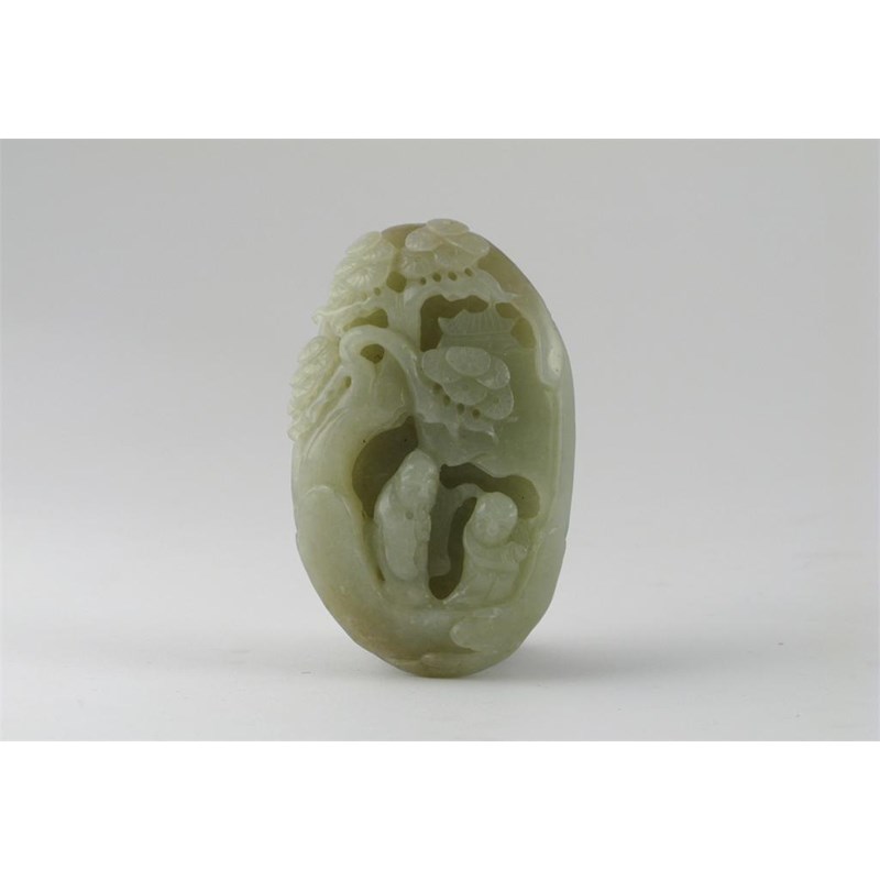 **A Chinese pale celadon coloured jade oval carving