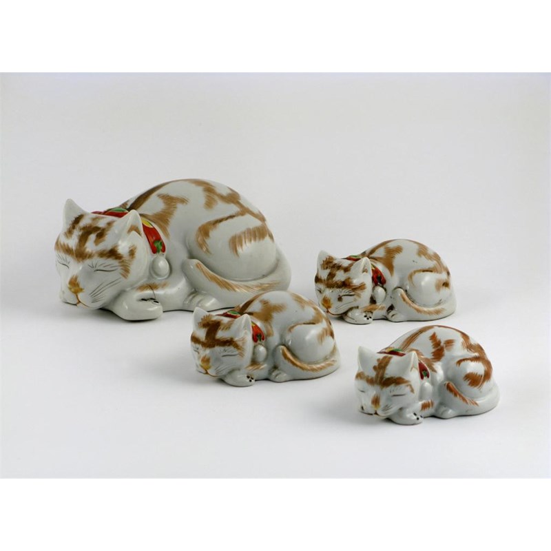 One large and three small Kutani models of cats, 20th century, 18cm max. (4)