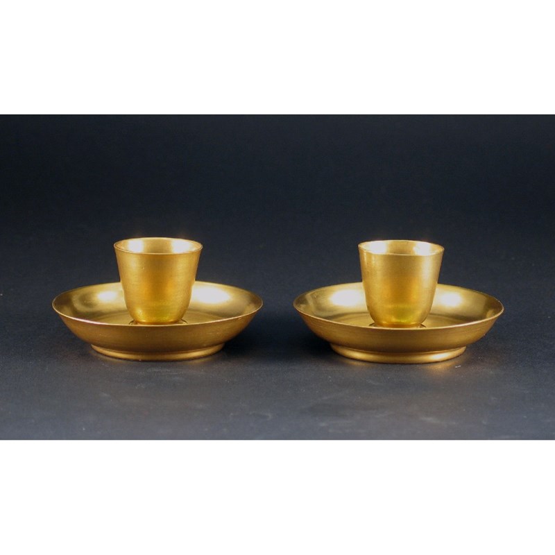 An unusual pair of Chinese gold-ground cups and stands, each with a flared U-shaped body with an overall gold glaze, 18th/19th century, 9.6cm. Max. (4)