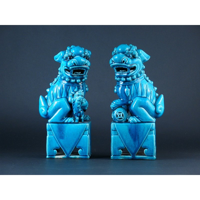 A pair of Chinese turquoise glazed dogs of Fo, 19th/20th century, 29cm. (2)