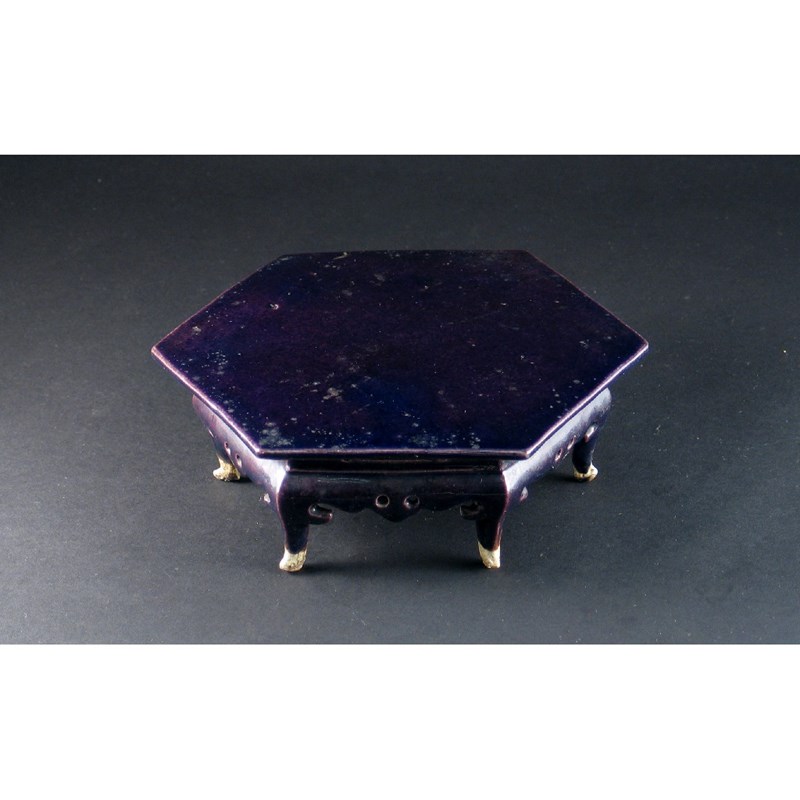 A Chinese aubergine glazed hexagonal stand, Kangxi 1662-1722, 23cm.