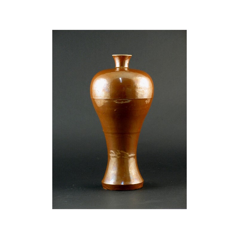 An unusual Chinese meiping vase, with an accentuated body constructed in sections and decorated with a lustrous brown glaze. A little grinding to the rim. Wanli six character mark and of the period,
