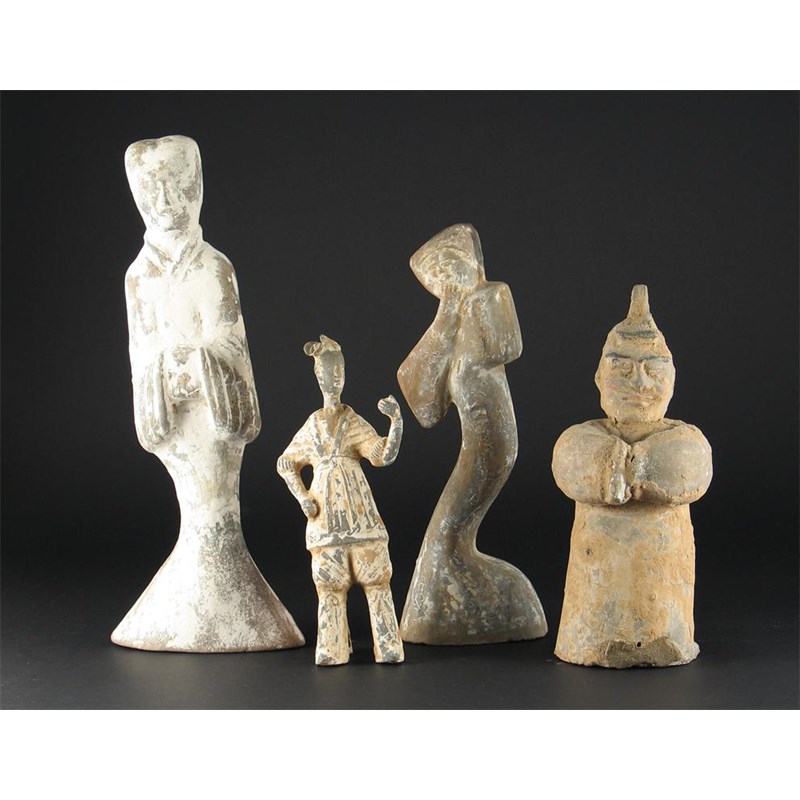 Four Chinese pottery figures, Han dyansty 206BC-220AD, 32cm. Max. (4)