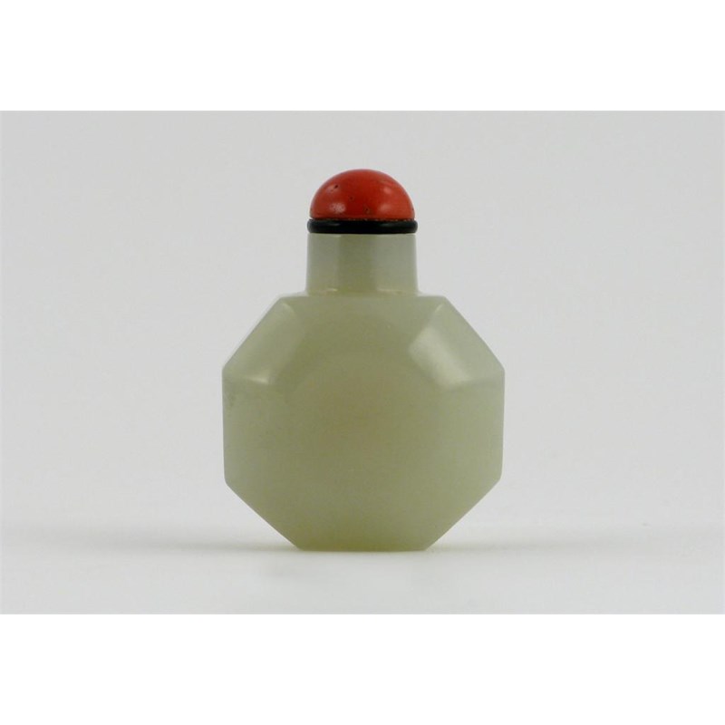 A Chinese pale celadon jade octagonal snuff bottle, late 18th century, 5.8cm.