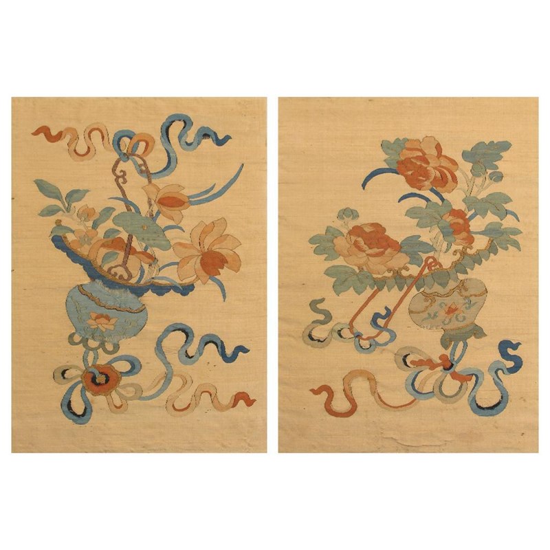 A set of four kesi embroidered panels