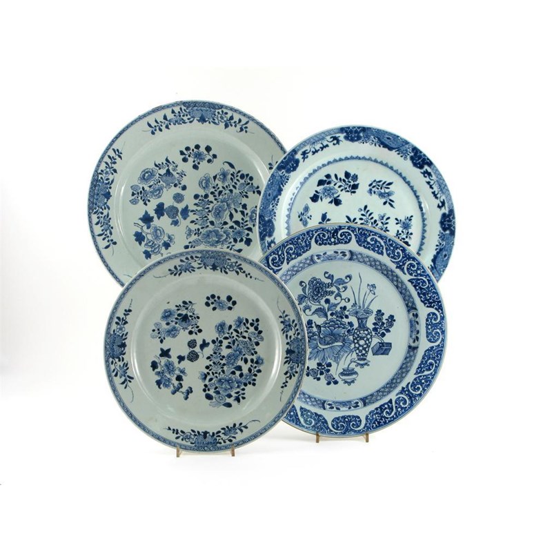 Four large Chinese blue and white dishes