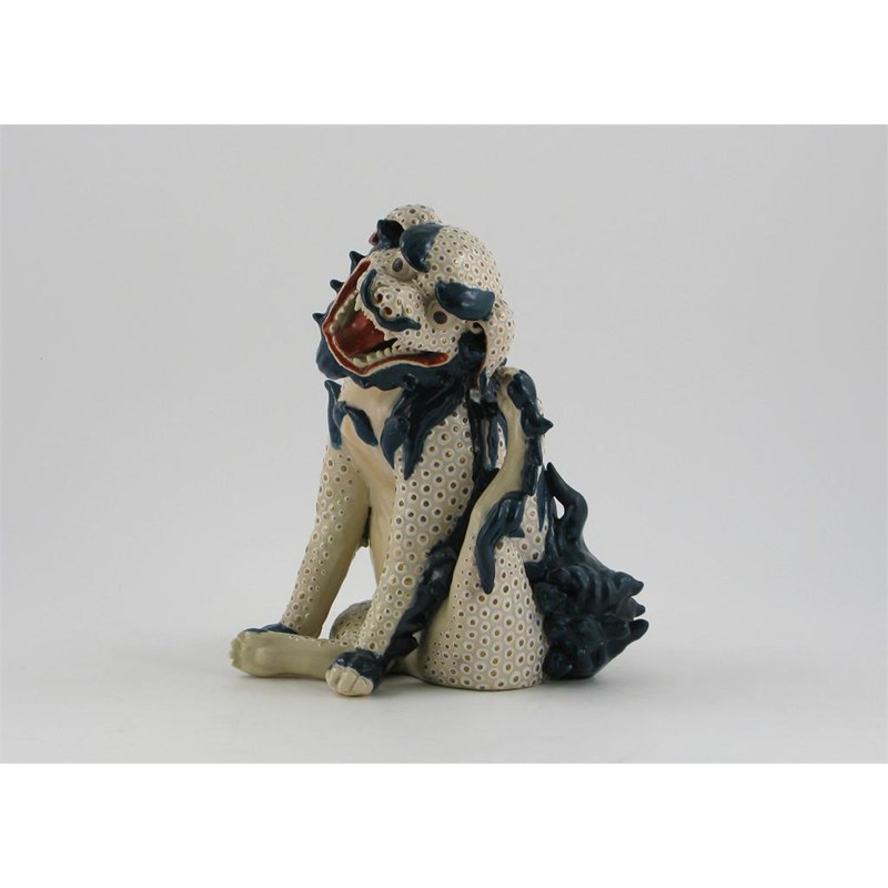 A Japanese Satsuma model of a shi shi, sitting scratching his left ear, 19th century, restoration, 27cm.