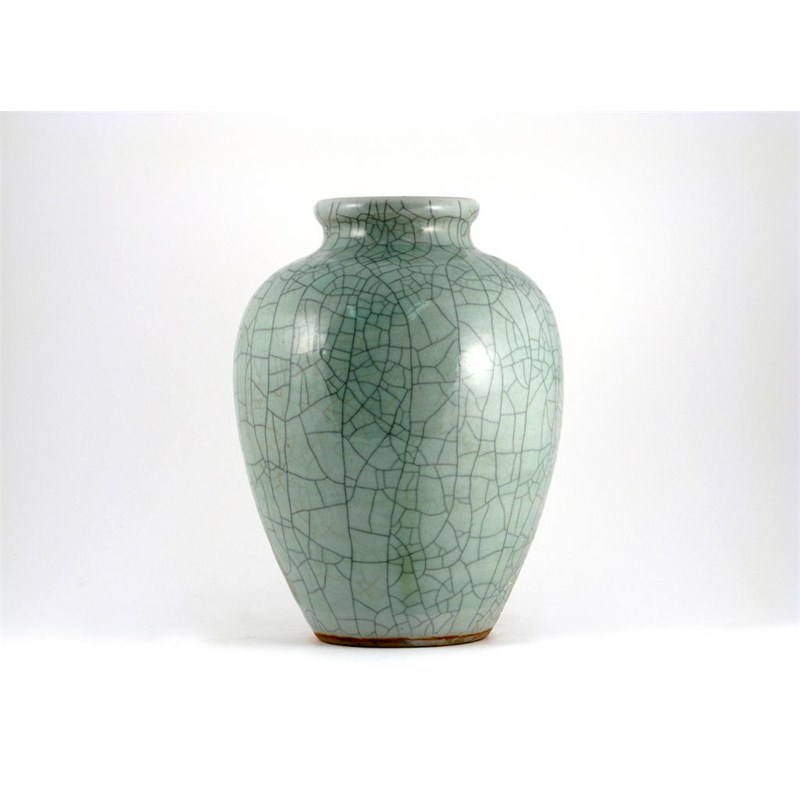 A Chinese ge-yao glazed ovoid vase, 18th / 19th century, a large re-glued section to the rim, 34.8cm.