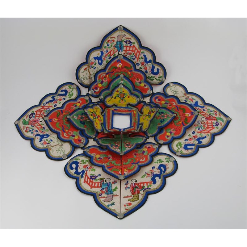 Various Chinese and Oriental textiles, including a folding collar, a scroll panel, coloured silk skirts, 19th and 20th centuries. (A lot)