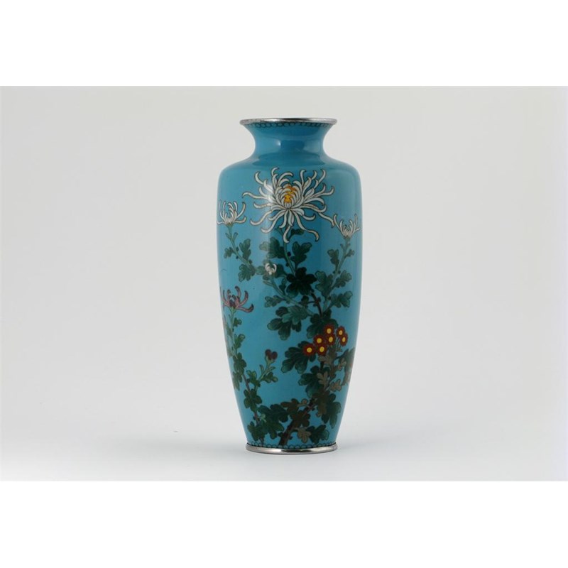A Japanese cloisonn? vase, decorated with flowers on a turquoise ground, Meiji 1868-1912, 20.5cm.