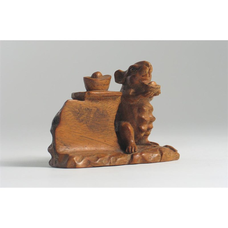 A small wood carving of a rat, holding half a nut, c.1900, 6.5cm.
