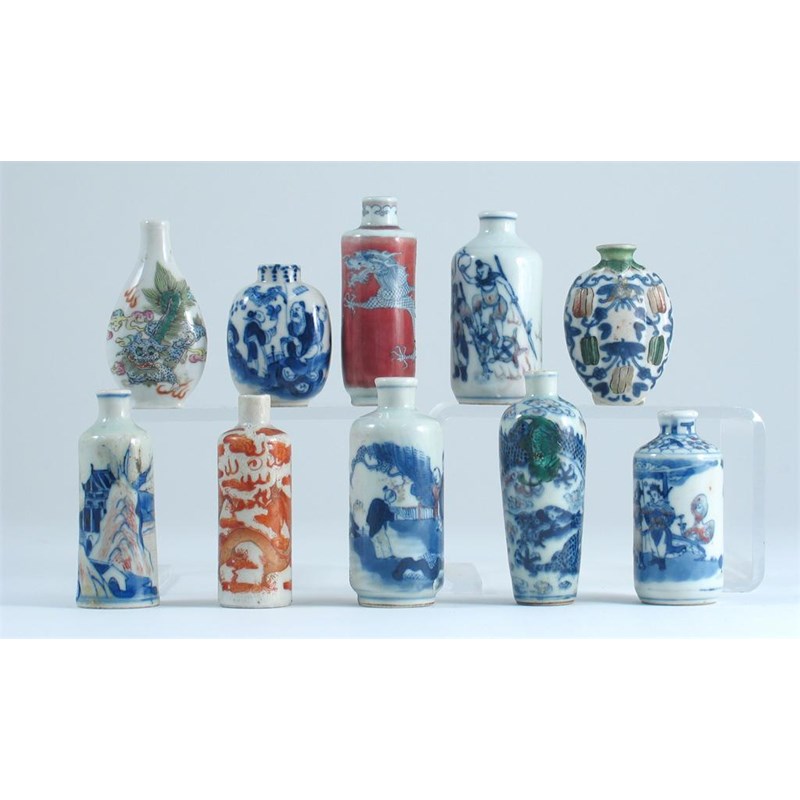 A collection of ten Chinese porcelain snuff bottles. (10)