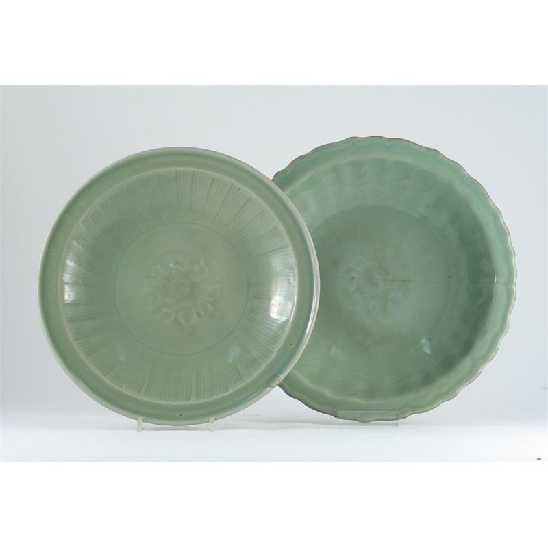 Two Chinese Longquan celadon dishes