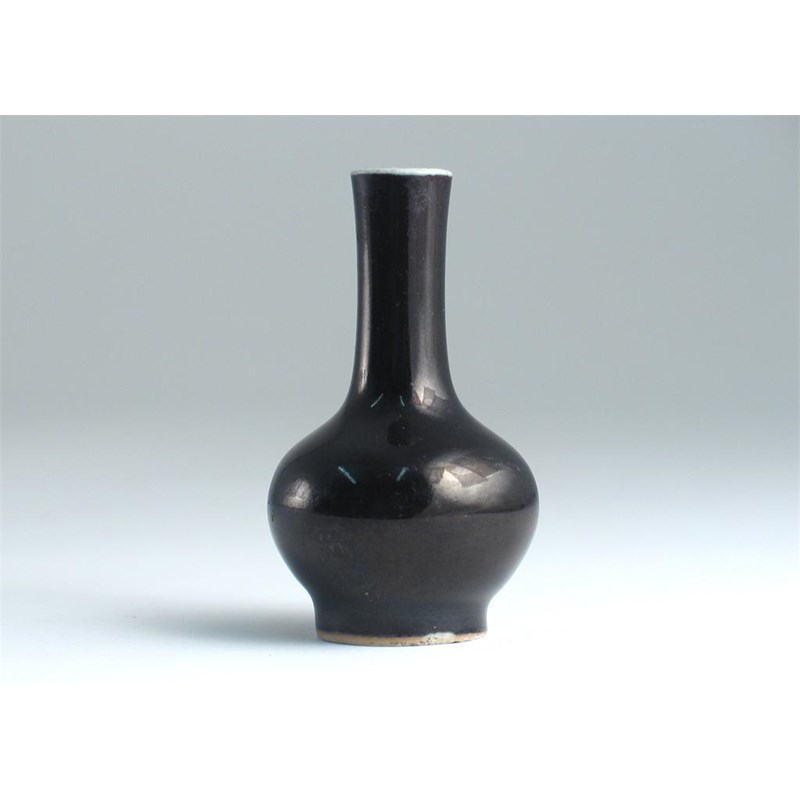 A miniature Chinese bottle vase, decorated with a mirror black glaze, probably 18th century, 7cm.