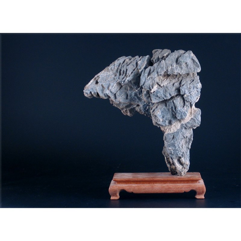 A Scholar's rock, shaped as a Chinese character, the grey stone with white striations, 23.5cm.