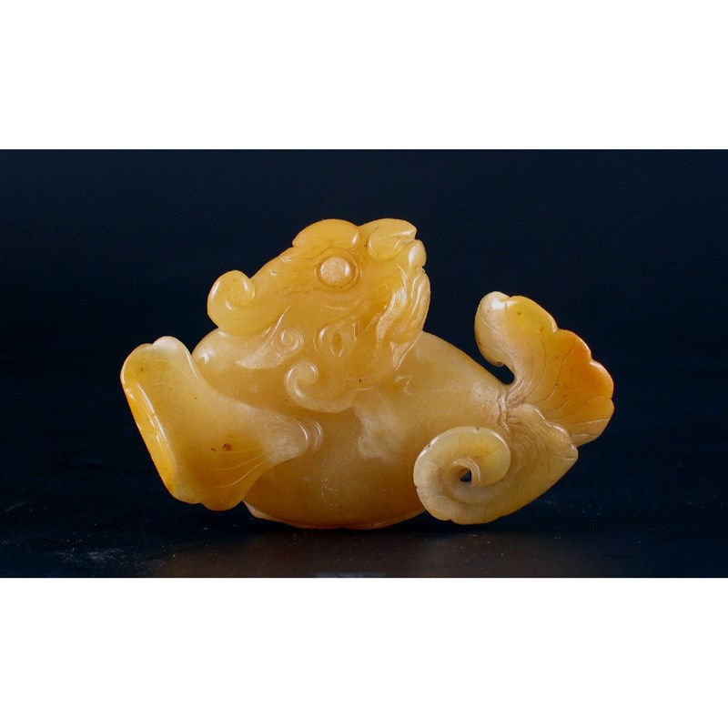 A Chinese hardstone carving of a stylized fish, the pale orange stone with darker speckled inclusions, 18th/19th century, 9.5cm.