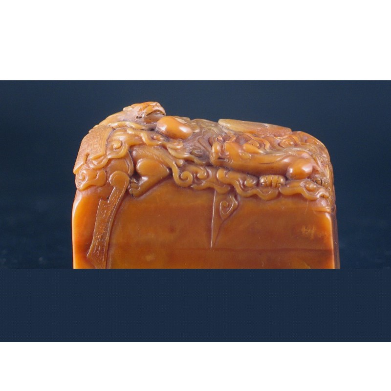 A Chinese soapstone rectangular carving, with two mythical beasts creeping amidst scrolls, 7.5cm.