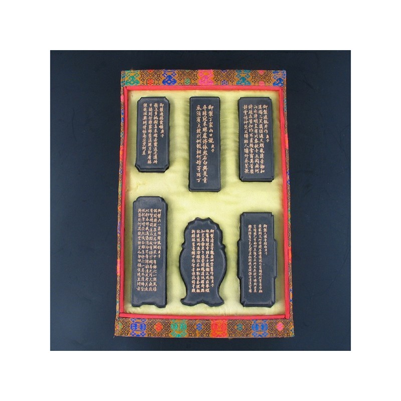 A set of six Chinese black ink blocks, inscribed in gilt by Hu Kaiwen, each finely moulded with pagoda landscapes, 10.5cm. Max. (6)