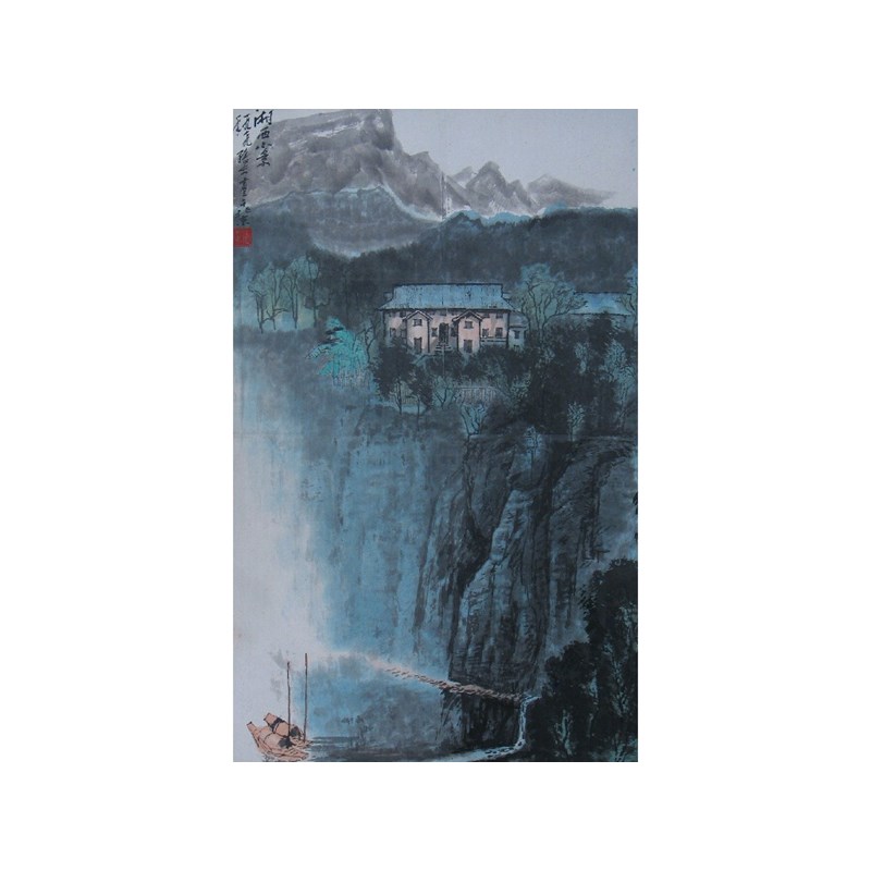 A Chinese scroll painting, of a view of Huxi by Zhang Bo and dated 1979, 68cm. x 45cm.