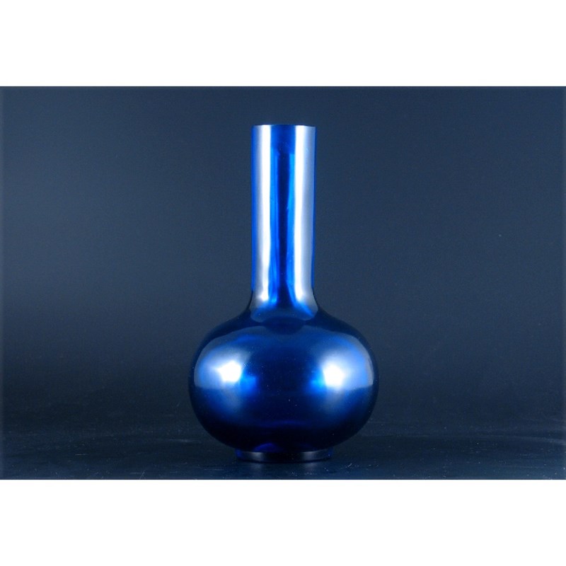 A Chinese blue Beijing glass vase, with a globular body and a tall cylindrical neck, a Daoguang four character mark and of the period 1821-50, 26.5cm.