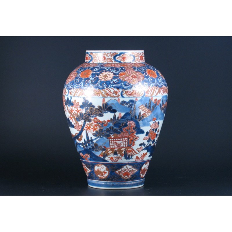 A Japanese Imari baluster vase, typically decorated with peony, chrysanthemum, pine and prunus, c.1700, 33.5cm.