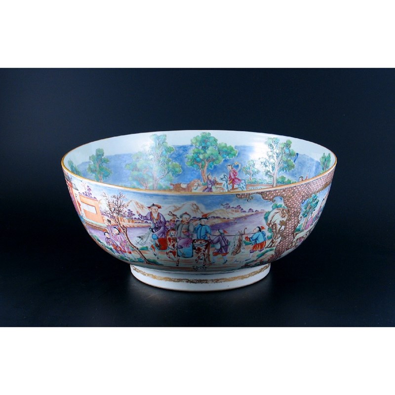 Hunting Interest: a large and rare Chinese famille rose hunting bowl