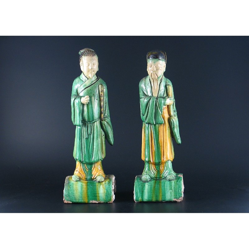 A pair of Chinese Ming dynasty pottery tile-work figures