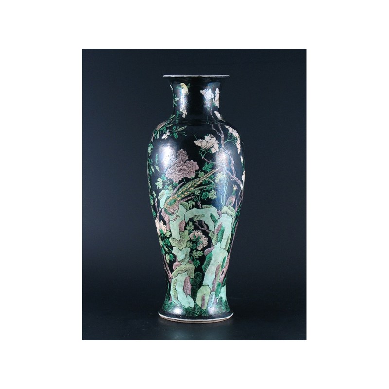 A large Chinese famille noire vase