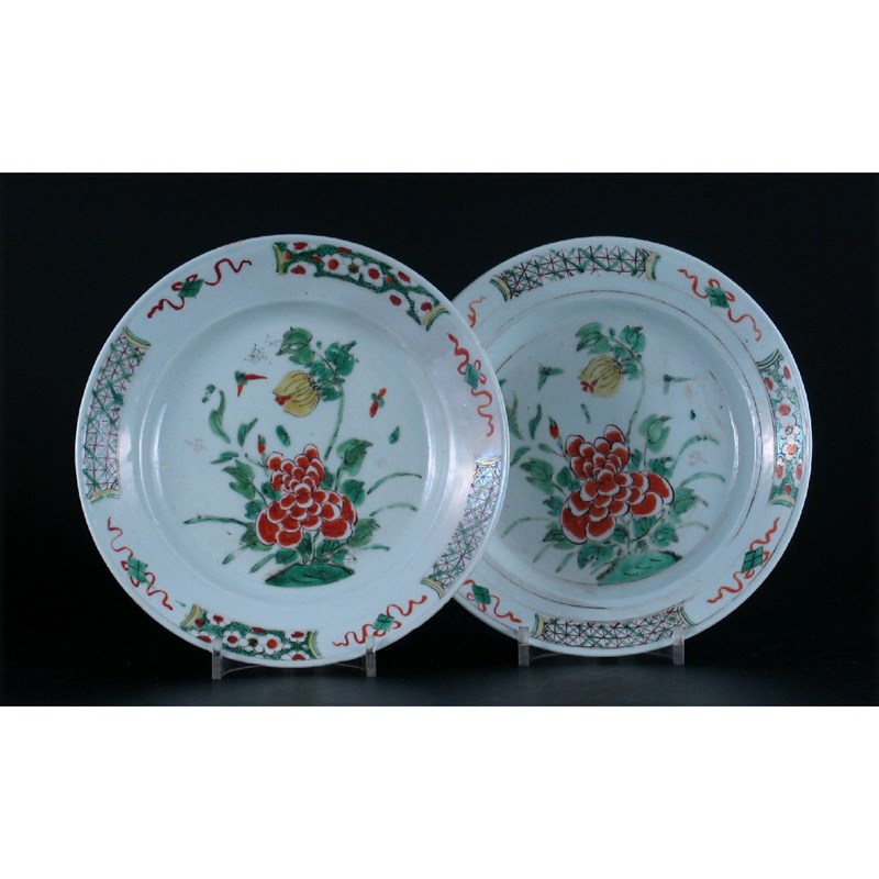 A pair of Chinese famille verte plates
