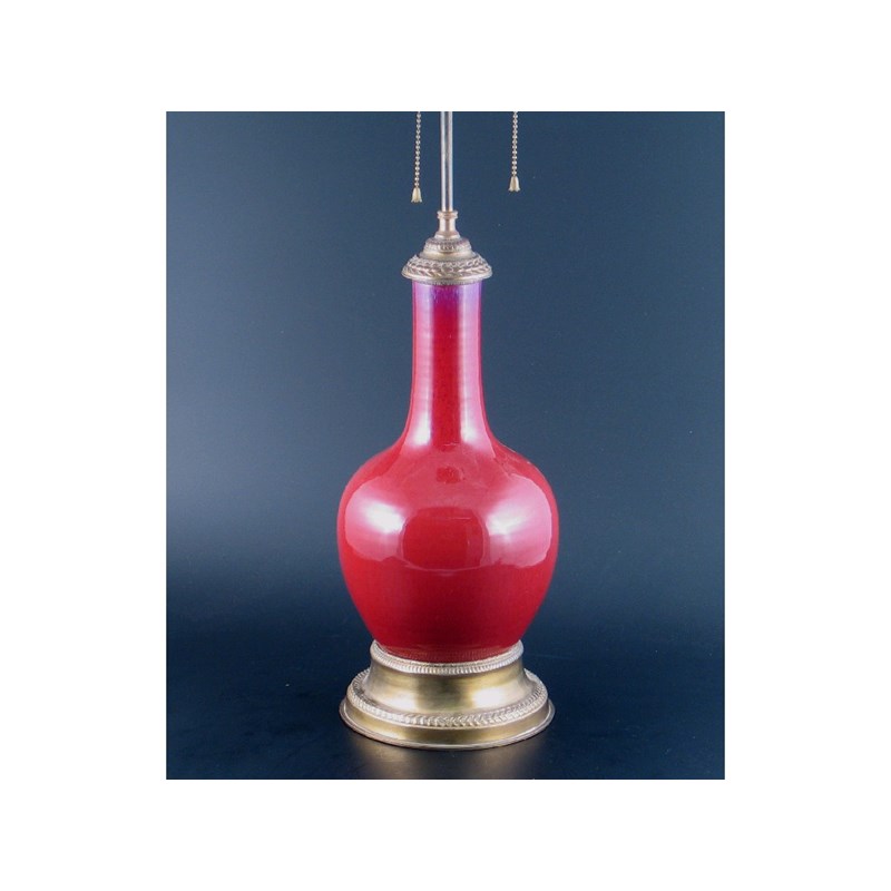 A Chinese red flamb glazed bottle vase, drilled and mounted as a table lamp, the porcelain 18th/19th century.