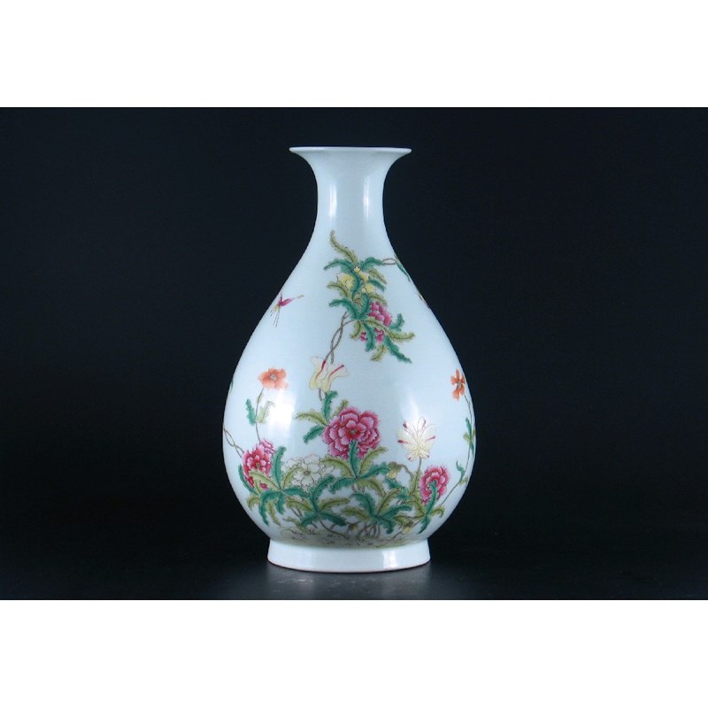 A Chinese famille rose vase, painted with insects flying above flowers and leaves, six character Xuantong mark, 30cm.