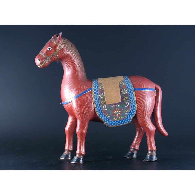 A Chinese cloisonn model of a horse, the saddle cloth decorated with lotus, 36cm. High.