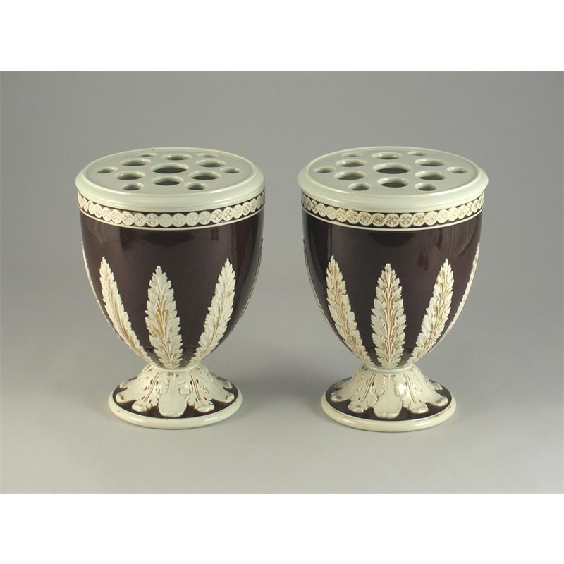 An unusual pair of Wedgwood pot pourri vases and covers