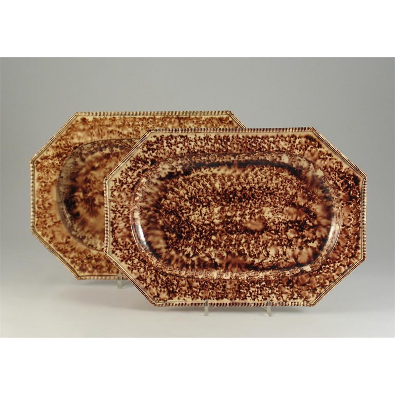 Two Whieldon type rectangular dishes, each with a sponged manganese brown glaze, c.1760, 31.5cm. (2)