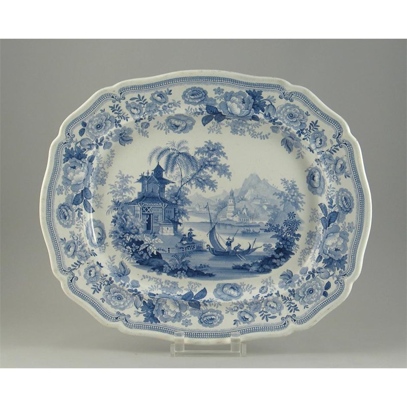 A Staffordshire blue printed meat plate, decorated with the 'Montes Pyrenenses' pattern, printed mark, 19th century, 43.5cm.