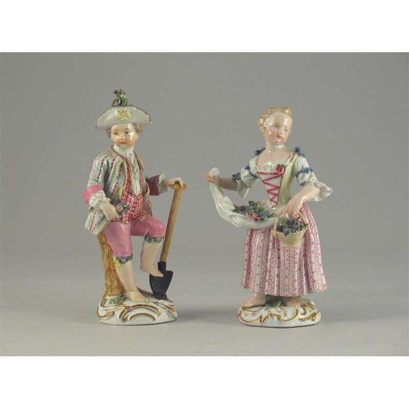 Two Meissen figures of a gardener and companion