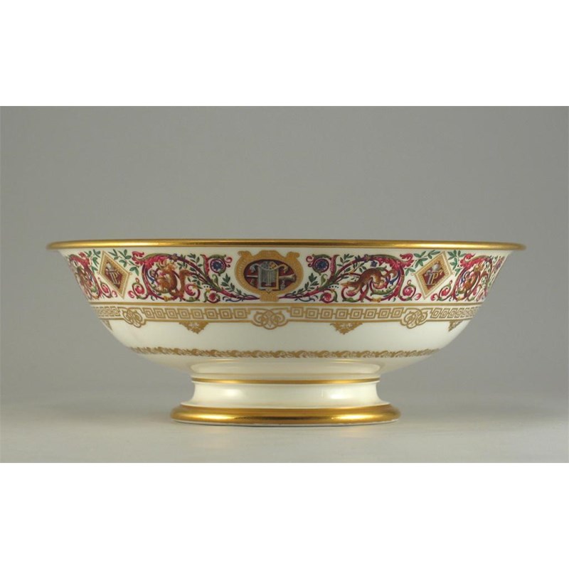 A S style salad bowl, decorated with a band with animals amidst leaf scrolls, the interior with a gilt geometric pattern, printed marks, 25cm.