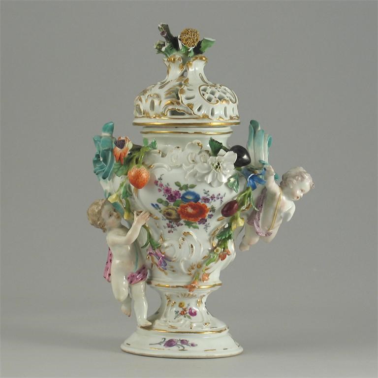 A Meissen rococo moulded pot pourri vase and cover