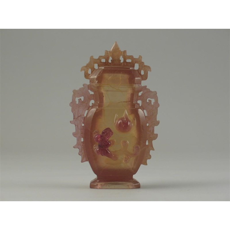 A Chinese hardstone vase and cover, of archaic form, carved with a chilong approaching a flaming pearl. Some flaws to the crystal. Probably 19th century, 12.5cm. (2)
