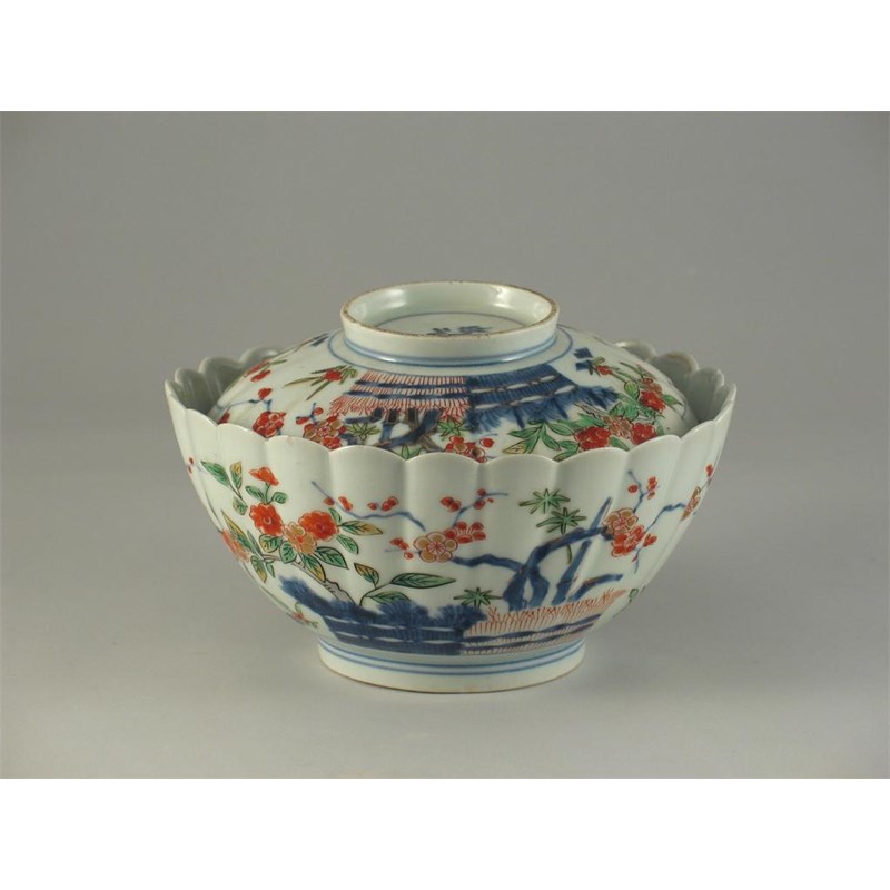 A Japanese Imari fluted bowl and cover