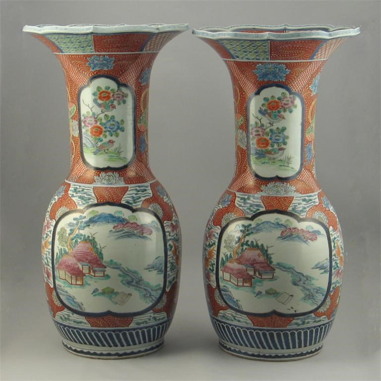 A massive pair of Japanese Imari vases