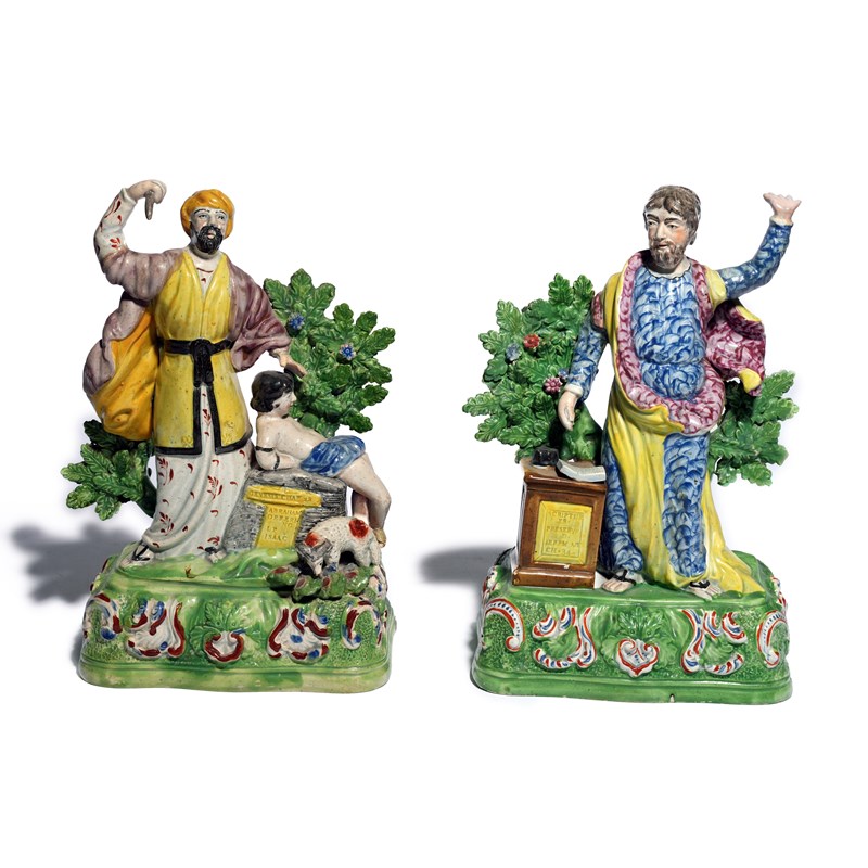 A matched pair of Staffordshire figures of religious subjects, c.1815-20, one of Jeremiah reading