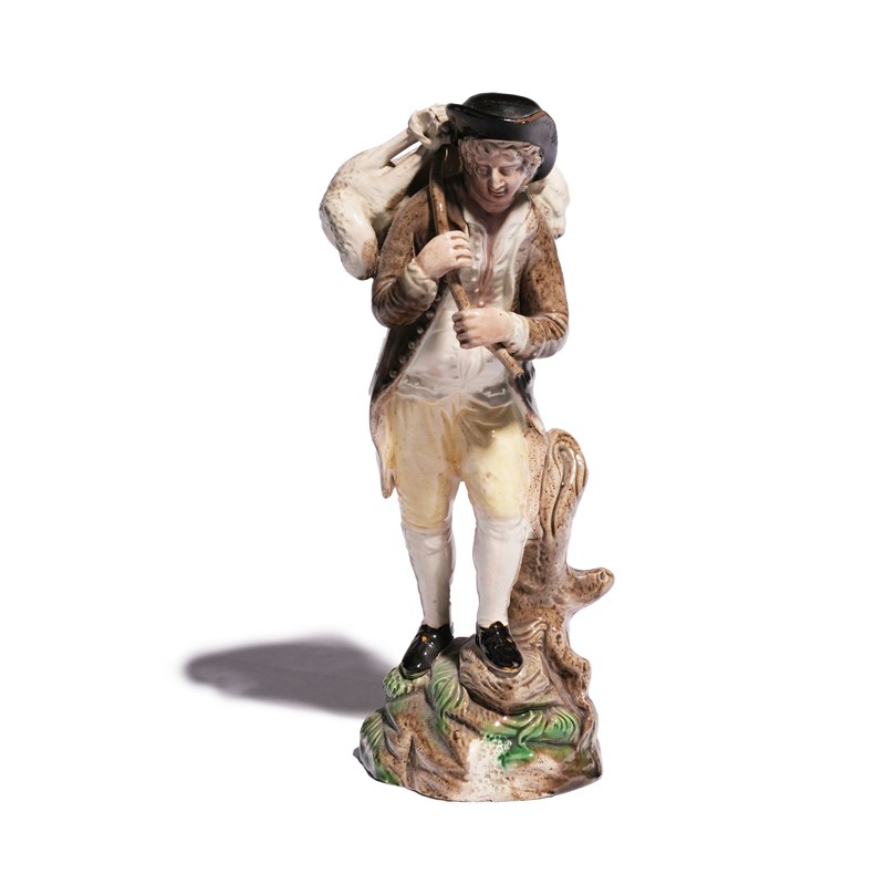 A Ralph Wood figure of 'The Lost Sheep', c.1790, a young shepherd carrying a lamb over his