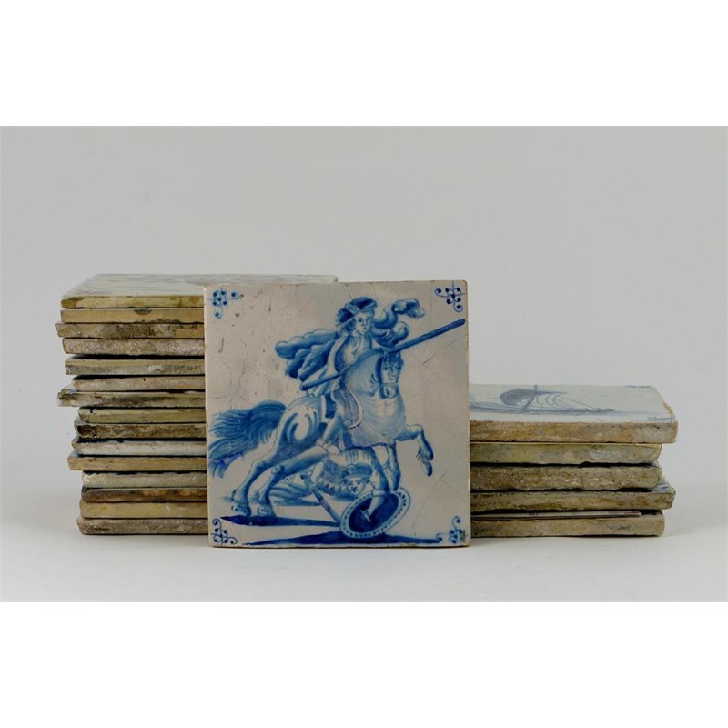 Twenty one Dutch and English Delft tiles