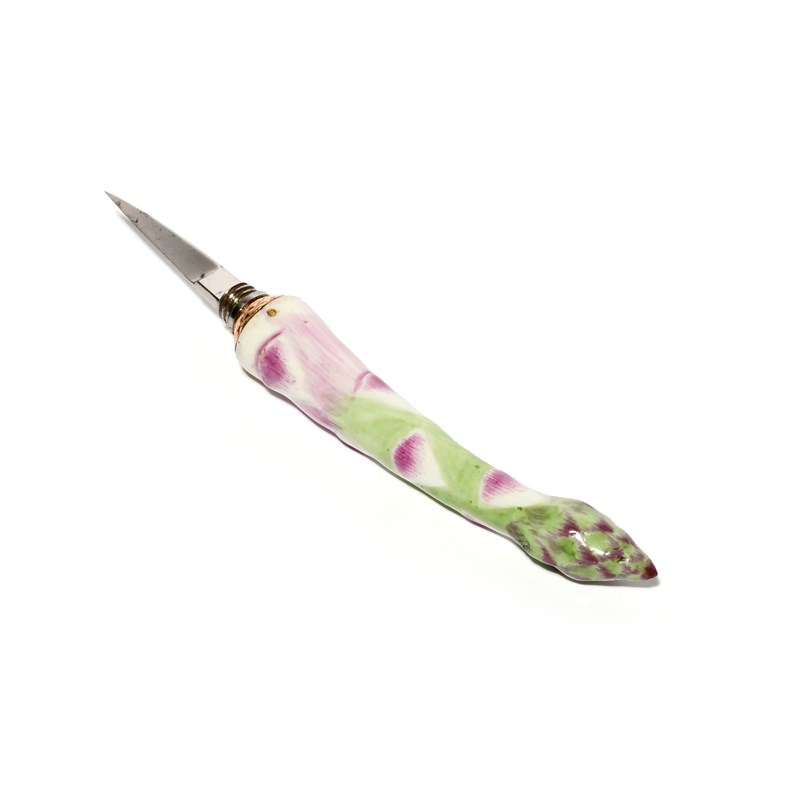 A rare Meissen porcelain quill knife, mid 18th century, modelled as a stem of asparagus, with gilt