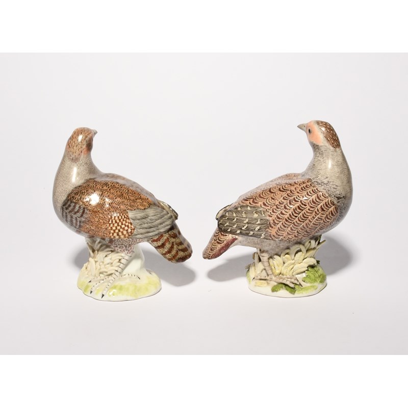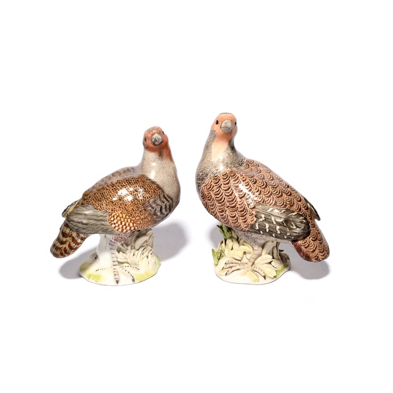 A matched pair of Meissen figures of partridges, mid 18th century, modelled by J J Kändler with