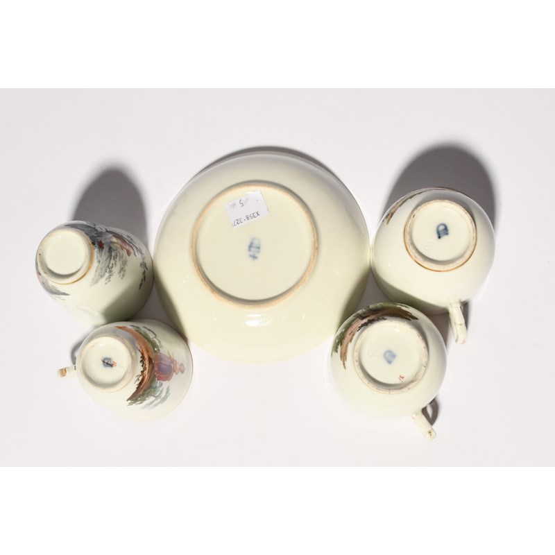 Three Vienna coffee cups with a beaker and a saucer, c.1770, the two larger cups painted by Andreas