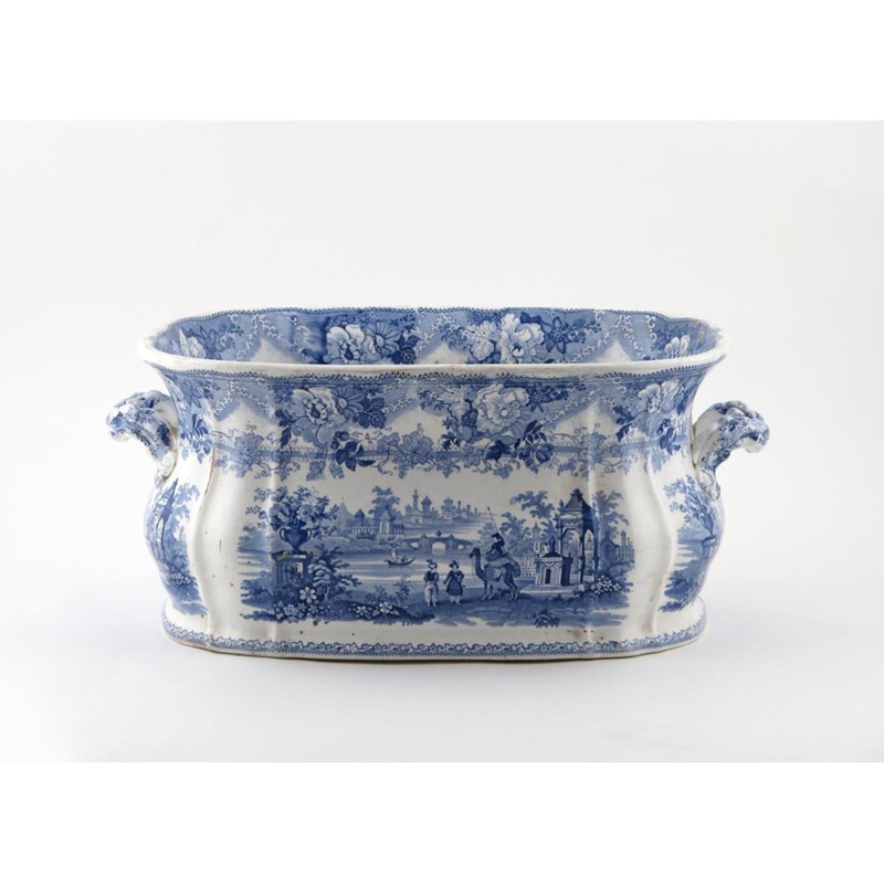 A large blue and white printed footbath 19th century