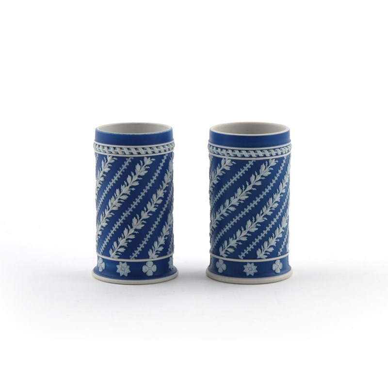 An unusual pair of Wedgwood Jasperware spill vases 19th century