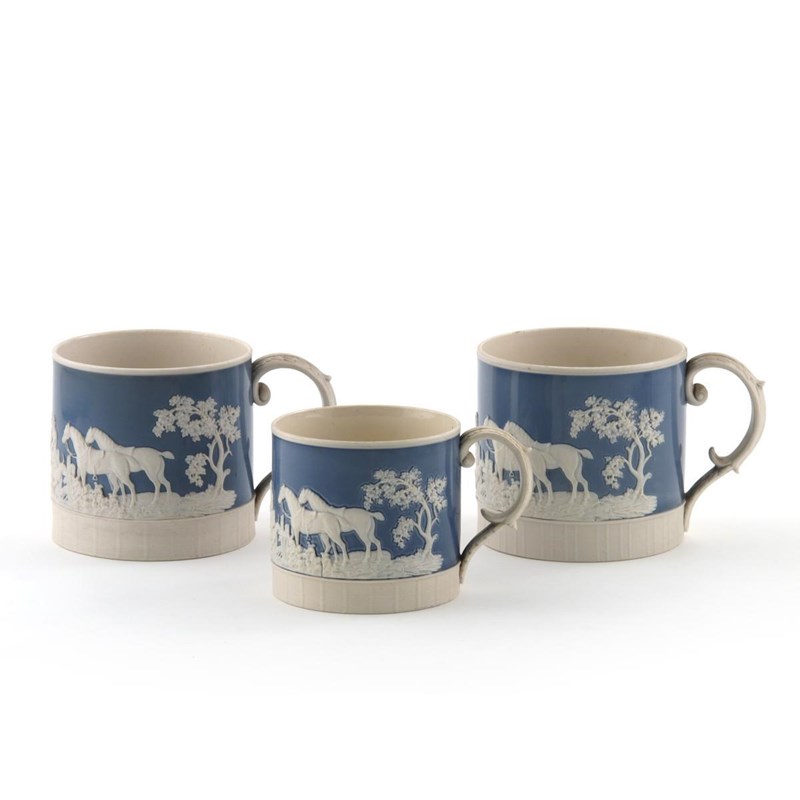 Three large dry-bodied stoneware hunting mugs 19th century